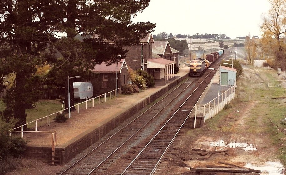 Then there was the magnificent huge bluestone five arch railway bridge where you could make your shout echo wonderfully. My father maintained that it was quite unique in that the stones were supposedly dovetailed together. One could walk on further to the solitude and beautiful scenery of the Malmsbury reservoir and the cemetery perched on the banks, where the Jones and Hollyman ancestors lay buried. Towards the end of the war Dad took the old shotgun and me for a walk across the paddocks looking for a rabbit. It first required a lot of negotiating with the store owner, Mr. Hoopell, as you required a permit at the time to buy ammunition, which only farmers were supposed to have. He seemed very loathe to sell any, and I recall thinking — “Didn’t he know that this was my father, who was a very important man. He worked on the railways”. After all that I don’t think we got any rabbits. Dad recalled, that as a lad , the family milked a cow and sold milk to many of the residents. Dad had to take the milk in ‘billys’ on his horse ‘Ginger’ to be delivered. He complained that it was very hard on his arms. The names of many of the town’s residents still strike a nostalgic chord – the Sullivans, Spences, Miss McCreary, Hoopells and our relatives, the Raysons. The magnificent old bluestone railway station was always an exciting place to visit, particularly in later years when I was able to wander off on my own to explore. Summertime was a particularly interesting time when the wheat trains would thunder through the station, across the bridge, and past the back of my Grandparents house. Gardens Bridge Sometimes there would be three engines belching vast plumes of smoke and pulling huge lines of trucks – the most I counted were forty five. They always gave a blast on their whistle as they approached the bridge which gave me time to rush up to the back fence to see it
