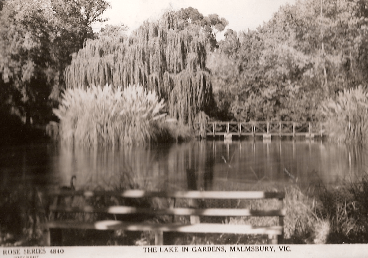Grandfather Jones was a wiry and very cheerful person with a full head of very dark hair and a large dark moustache. His favourite pipe was never very far away. Grandmother (Bessie) was a rather severe person and I was always felt a little intimidated by her. However they were wonderful days with exciting things to do in the large barn at the back with its hay and loft. At the bottom of the hill were the gardens designed by Baron Von Mueller with their large pond, huge pine trees, maze, and lots of carolling magpies on the banks of the Coliban River. After my Grandfather retired from the Shire he became the gardener which I felt gave us almost a proprietary interest in the gardens. The smell of the pine trees remains with me as does the memories of the carolling magpies in the early morning. It was in these gardens that I first became acquainted with a Furphy tank on the end of which was the legendary verse:-
