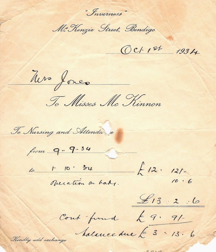 My Mother was a third generation Bendigonian and attended the North Bendigo Primary School and later the Bendigo Girls School. On leaving school she worked as a shop assistant at Monaghans store in Mitchell Street. She was the eldest of five children born to Glen and Anna Emelia (Ludeman) Doig. Doris died aged 17 in 1922 from a disease thought to be diphtheria , and Glen, who was not married died on 5 May 1935, aged 29, as a result of drowning in two inches of water after during an epileptic fit. He had been working near Woods Point with Grandpop Doig looking for gold following the Depression.