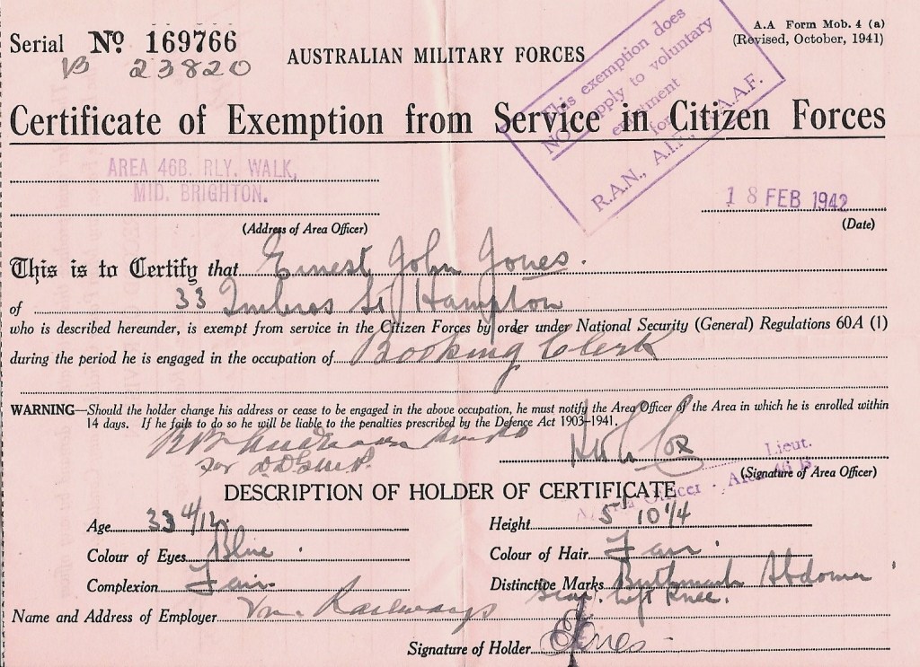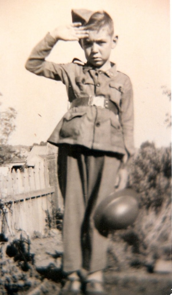 About 1942 word came through that John Potter, who had married Gladys Brauman across the road was missing in action after the Japanese took Rabaul. It was some time before it was learned that he had escaped with nine others in a small boat and sailed, with very little food or water, for 10 days before reaching safety. There was much rejoicing around our area. On the lighter side the Provos (Military Police) raided the Ermils who lived in our street but backed onto Aunty Jean’s place. They were looking for one of the boys who had gone AWOL from the army. There was quite a chase over the fences and through the neighbours’back yards. This provided the neighbourhood with several weeks worth of gossip. It was about this time that I had a brush with the army on my way home from school, when I was