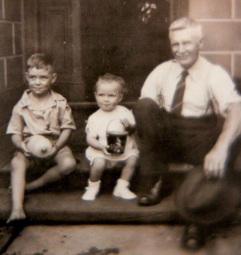 Grandpop Doig played a very significant role in my life, even at this early age. He always came for tea on Sunday nights and was a most impressive person to a small lad like me. He used to take us kids, Pat and Faye Doig, Joan and Pam Knight for walks out past Comet Hill to Holdsworth Road on a Sunday. This was all bush at the time with lots of relics from the gold mining days. It was very exciting as you would suddenly come out of the Chinese scrub and there would be a narrow gauge railway line with some old trucks on it which had been used for taking the mullock from the shaft to the waste heap. Granddad could always find specs of gold which we could never do. He showed us what berries could be eaten from the native trees, and he had a wonderful fund of stories from his past. You never messed around with him as he pulled you into line very smartly. I loved to hear the stories told by Uncle Bill and Aunty Jean about Granddad’s exploits in the past. For instance all the wooden poppet heads in Bendigo had been built by him. People told me how he could walk around on a piece of 4”X4” on top of a poppet head without any hesitation and one story told of a worker who dropped a hammer from a great height which just grazed Granddad’s head. The worker wouldn’t come down till it got dark. On another occasion he wanted to fire an employee (whilst working at Swan Hill) after the man had killed a magpie. Glen and Bill had to do a lot of talking to get him to keep the man on, his saving grace being that he had a wife and children. This contrasted somewhat with the story he proudly told me many years later that he could shoot the head off a flying swan at 80 metres with an old muzzle loader. Grandpop had a pet dog called Jack, a very nondescript but faithful old dog which followed him everywhere.